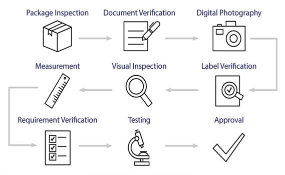 We will perform the visual inspection when all goods entry warehouse, and make all the detailed inspection records that including manufacturer、part number、quantity、date code and ROHS standards inspection.